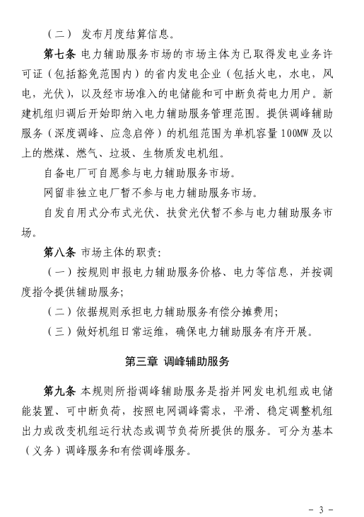 電力輔助服務(wù)市場(chǎng)的市場(chǎng)主體為已取得發(fā)電業(yè)務(wù)許可證的省內(nèi)發(fā)電企業(yè)(包括火電、水電、風(fēng)電、光伏),以及經(jīng)市場(chǎng)準(zhǔn)入的電儲(chǔ)能和可中斷負(fù)荷電力用戶。自備電廠可自愿參與電力輔助服務(wù)市場(chǎng)。