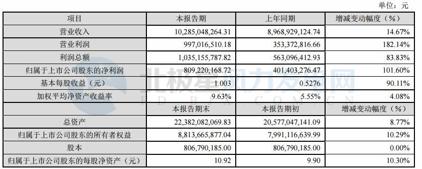 中材科技2017年實現(xiàn)股屬于上市公司股東的凈利潤8 09億元(809,220,168 72元),同比增長101 60%。
