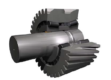 針對風電機組空間限制導致行星齒輪結構尺寸難以滿足剛性要求的現(xiàn)狀,國外提出行星齒輪與軸承外圈一體化的解決方案和鐵姆肯類似的集成式柔性銷方案(見圖1)。國內(nèi)杭齒和南高齒分別采用一體化結構和集成柔性銷結構試制了幾臺變速箱。由于行星齒輪要根據(jù)加工工序分別在變速箱廠和軸承廠完成機械加工、熱處理和產(chǎn)品檢測,變速箱的成本大幅度提高。國內(nèi)風電整機企業(yè)在目前的市場價格下,難以接受。而國外整機企業(yè)已經(jīng)批量采用此類結構的變速箱。