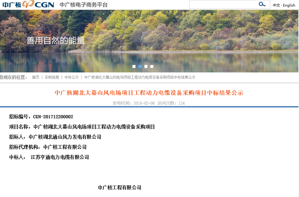 中廣核湖北大幕山風(fēng)電場項(xiàng)目工程動(dòng)力電纜設(shè)備及開關(guān)柜設(shè)備采購中標(biāo)結(jié)果公示