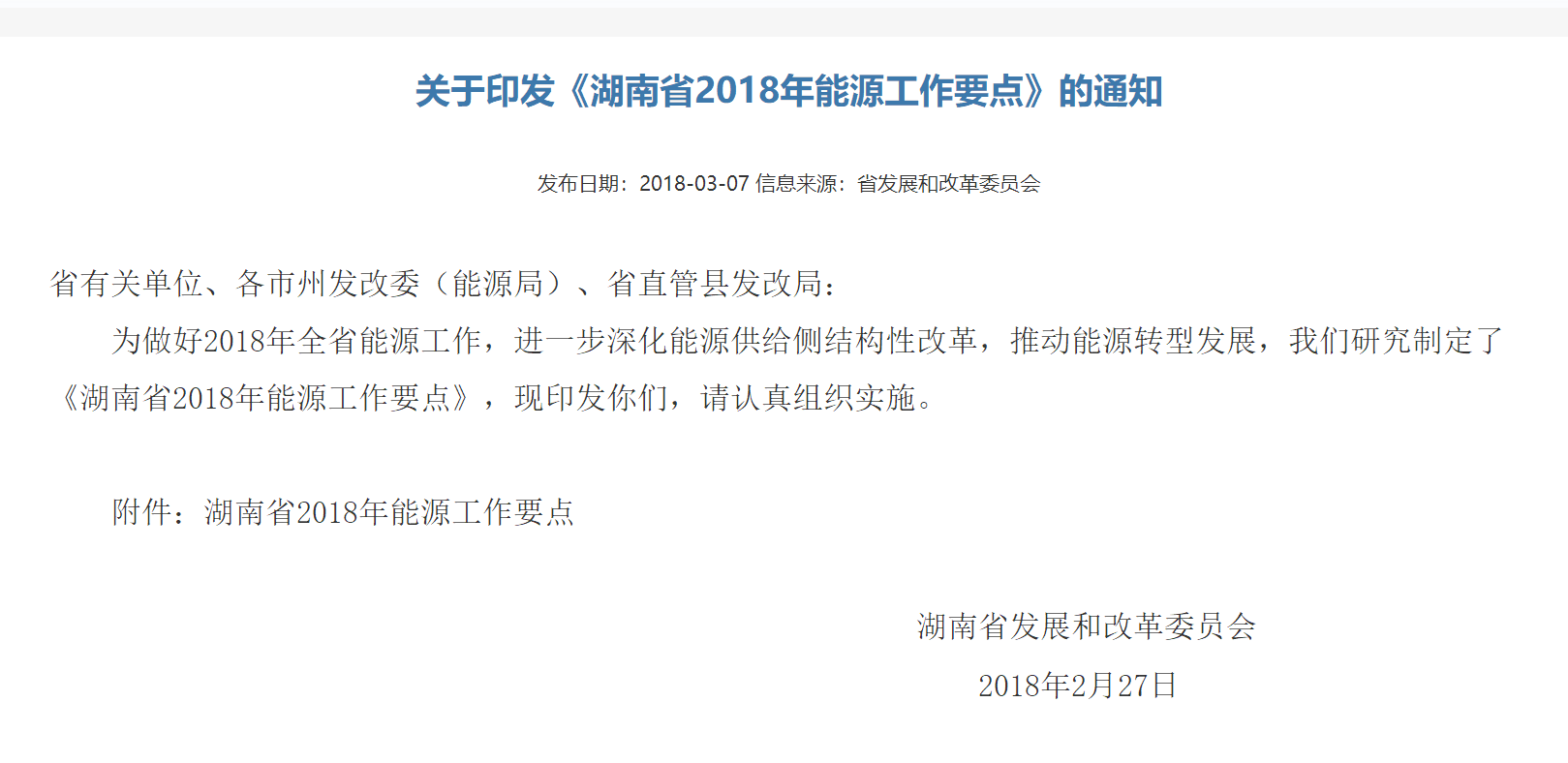 湖南省2018年能源工作要點