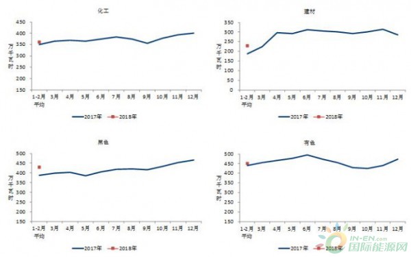 圖3  2017、2018年重點(diǎn)行業(yè)分月用電量情況