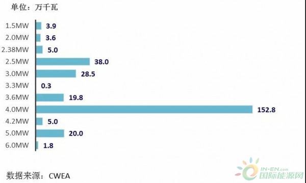 圖18  2017年中國海上風(fēng)電不同功率機(jī)組累計(jì)裝機(jī)容量