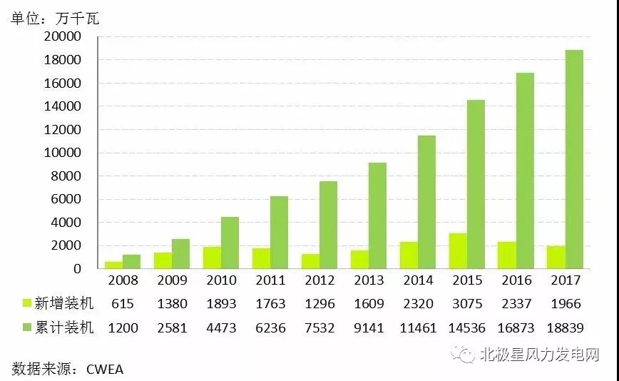 “千呼萬喚始出來”。在滿城漸飛絮的4月,MAKE、中國風能協(xié)會相繼公布了2017中國風電整機商排名及市場裝機情況。CWEA權(quán)威數(shù)據(jù)顯示,2017,全國(除港、澳、臺地區(qū)外)新增風電裝機1966萬千瓦,同比下降15.9%;MAKE 公布的數(shù)據(jù)顯示2017全年新增風電裝機1880萬千瓦,雖具體數(shù)據(jù)略有不同,但市場總體趨勢相同:從2015年風電新增裝機首次突破3000萬千瓦大關(guān),到2016年的2337萬千瓦,再滑落至2017年的1966萬千瓦,增速放緩明顯,多家證券公司分析認為2018年中國風電將觸底反彈,產(chǎn)業(yè)復(fù)蘇。