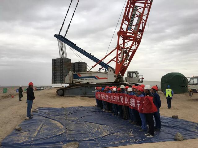 2018年8月30日7:57,青海華電諾木洪風(fēng)電項(xiàng)目首臺(tái)風(fēng)機(jī)機(jī)組第一節(jié)塔筒伴隨著吊車吊臂的緩緩上升,在空中完成“接軌儀式”,標(biāo)志著華電集團(tuán)在青海的首個(gè)風(fēng)電項(xiàng)目正式進(jìn)入安裝階段。