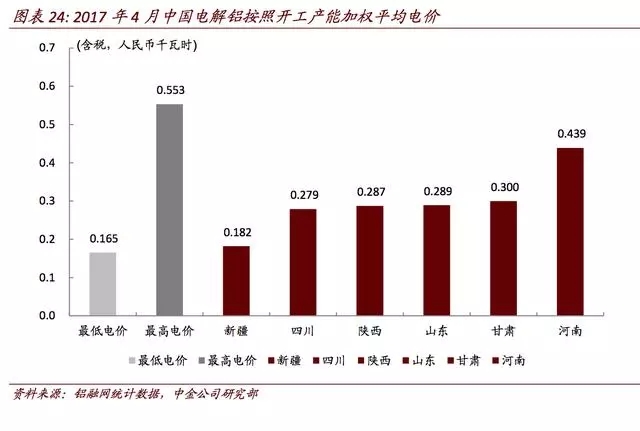 新疆和山東地區(qū)自備電廠配備占比高,新疆和山東自備電廠成本約0.15元/千瓦時和0.2-0.3元/千瓦時,而河南地區(qū)的電解鋁配有自備電廠的占比較低,電力成本在0.4-0.5元/度。