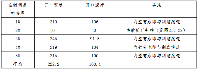 墜落的人員中有7名作業(yè)人員墜落在單邊長度小于3米的倒V形范圍內(nèi),3袋物料的落點集中,墜落竹排的撞擊坑痕跡呈近似直線形態(tài)分布,竹排大部分沿東西取向,4榀簡易桁架墜地后大體上沿南北取向,且比較集中在靠近西側(cè)垃圾儲坑邊緣。
