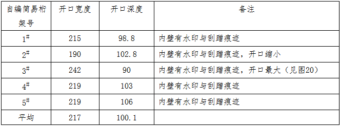 5榀簡易桁架中最小變形量為650mm,平均變形量為820mm。鞍座內(nèi)表面存在雨水痕跡和事發(fā)時刮蹭的痕跡。