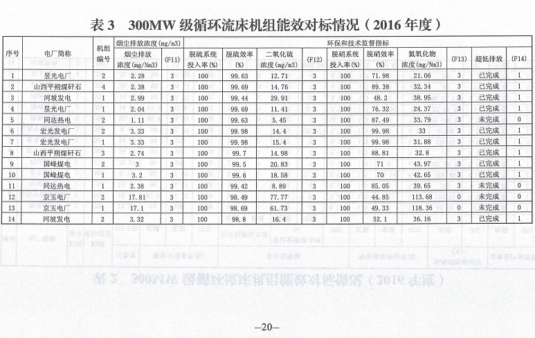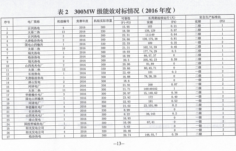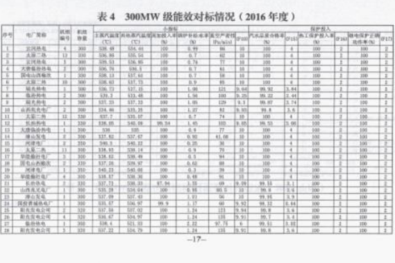 山西省發(fā)布2016年度火電企業(yè)能效水平的通報(bào)