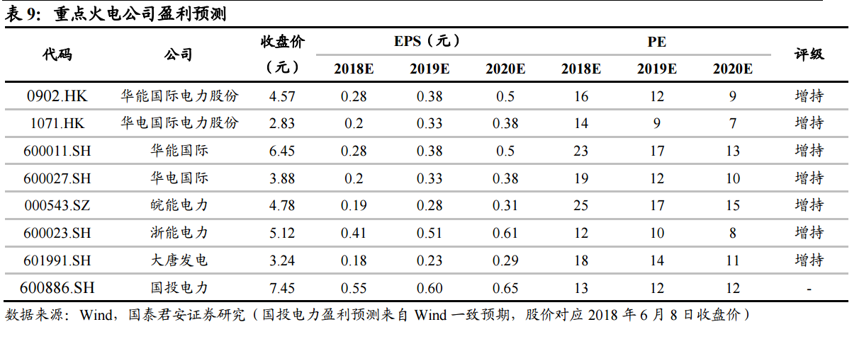 在目前市場波動加大的背景下,電力配置屬性凸顯,持續(xù)推薦火電板塊。首推估值處于歷史低位的港股火電企業(yè)華能國際電力股份、華電國際電力股份, A 股推薦資產(chǎn)優(yōu)質(zhì)、分紅比例高、類債屬性凸顯的全國火電企業(yè)華能國際、華電國際,以及地方龍頭皖能電力。