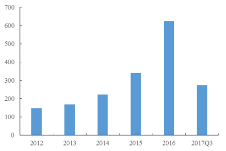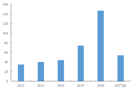 據(jù)統(tǒng)計,2016年垃圾焚燒發(fā)電中標/簽約項目約為147個,2017年前三季度垃圾焚燒發(fā)電中標/簽約項目約為54個。