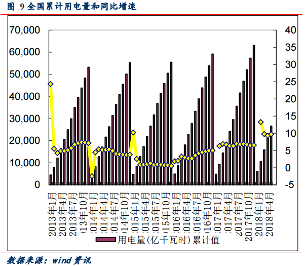 1-5 月份,全國(guó)全社會(huì)用電量 26628 億千瓦時(shí),同比增長(zhǎng) 9.7%,增速比上年同期提高 3.4 個(gè)百分點(diǎn)。