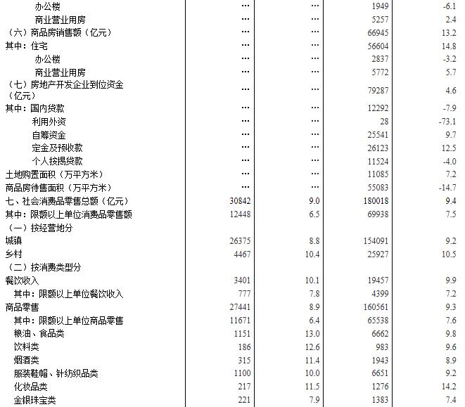 上年同期社會(huì)消費(fèi)品零售總額數(shù)據(jù)根據(jù)第三次全國(guó)農(nóng)業(yè)普查結(jié)果及有關(guān)制度規(guī)定進(jìn)行了修訂,增速按照可比口徑計(jì)算。
