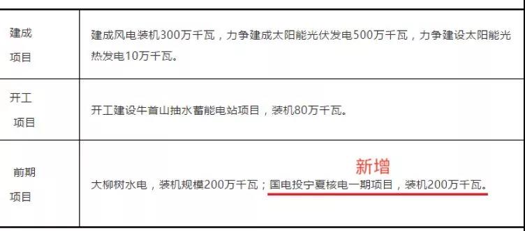 ......結(jié)合黃河黑山峽河段水利工程進(jìn)度,適時開展大柳樹水電站前期工作。根據(jù)國家內(nèi)陸核電發(fā)展政策,積極推進(jìn)核電項目廠址普選論證及保護(hù)工作。(新增)”