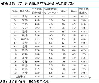 我們以阜陽市為例,2017年大氣污染防治工作考核不合格。2018年3月6日,安徽省政府辦公廳公布2017年度大氣污染防治工作考核結(jié)果。黃山市、合肥市為優(yōu)秀等次,池州市、阜陽市、淮南市、亳州市為不合格等次??己瞬缓细竦乃某鞘袑⒚媾R環(huán)評限批,即新增大氣污染物排放建設(shè)項目將被暫停審批。