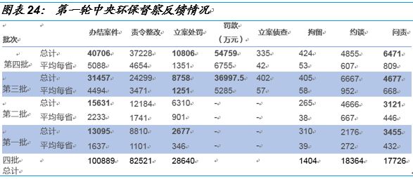 民眾參與程度提高、處罰企業(yè)力度加大、問責(zé)官員數(shù)量增多。3月29日,在生態(tài)環(huán)境部3月份例行新聞發(fā)布會上,生態(tài)環(huán)境部新聞發(fā)言人劉友賓表示第一輪中央環(huán)保督察共問責(zé)黨政領(lǐng)導(dǎo)干部1.8萬余人,受理群眾環(huán)境舉報13.5萬件,直接推動解決群眾身邊的環(huán)境問題8萬多個。隨著中央環(huán)保督察的追批次展開,民眾參與程度更高、處罰企業(yè)力度更大、問責(zé)官員數(shù)量更多。第四批督察辦結(jié)群眾舉報案件40706件,遠高于前三批的13095件、15631件和31457件,群眾的參與度高體現(xiàn)了對中央環(huán)保督察的認可和擁護。問責(zé)官員數(shù)量更多,主要體現(xiàn)在約談人數(shù)和問責(zé)人數(shù)。特別是第四批督察的問責(zé)人數(shù)的總數(shù)和每省平均人數(shù)為6471人和809人,均創(chuàng)四批督察的新高。