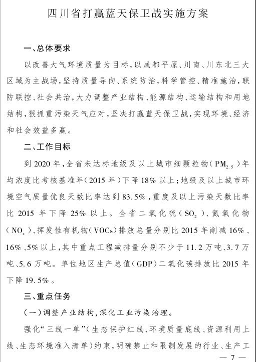 四川省人民政府關(guān)于印發(fā)四川省打贏藍(lán)天保衛(wèi)戰(zhàn)等九個(gè)實(shí)施方案的通知