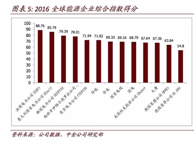 華能集團與世界同類能源企業(yè)對標報告(2016)中選取了13家國內(nèi)外同類能源企業(yè)按規(guī)模、業(yè)績、社會貢獻等指標進行分析,數(shù)據(jù)顯示我國的五大發(fā)電集團雖在規(guī)模上有明顯的優(yōu)勢,但經(jīng)營業(yè)績和效益較國外電力企業(yè)仍有較大的差距。
