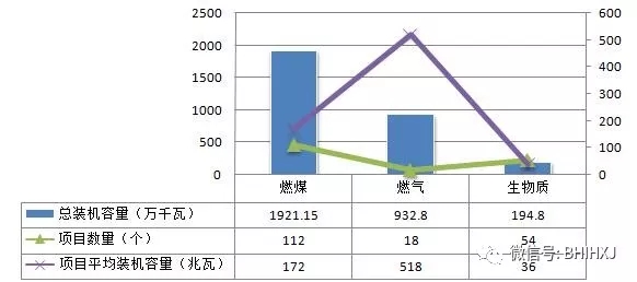 1.新核準熱電聯(lián)產項目燃煤最多,燃氣平均裝機規(guī)模最大