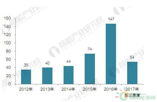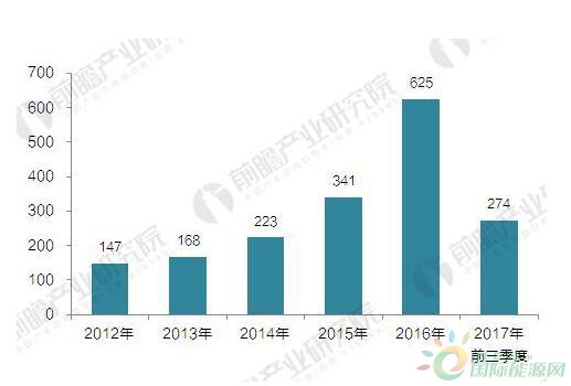 隨著垃圾發(fā)電項目的密集上陣,行業(yè)投資規(guī)模不斷擴大,僅以上面統(tǒng)計的垃圾焚燒發(fā)電項目,2012年總投資額在160億元左右,2016年垃圾發(fā)電項目投資額超過600億元,增長速度較快。2017年前三季度垃圾發(fā)電項目投資額約為274億元。