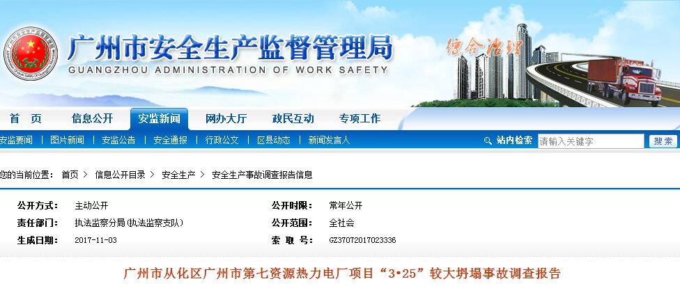 近日,廣州市安全生產(chǎn)監(jiān)督管理局公布《廣州市從化區(qū)廣州市第七資源熱力電廠項目“3•25”較大坍塌事故調(diào)查報告》,全文如下: