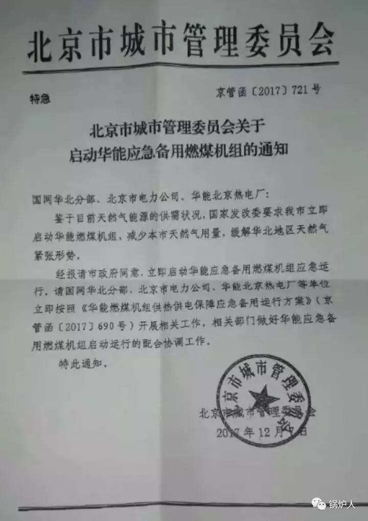 12月9日,網(wǎng)傳的一份《北京市城市管理委員會關(guān)于啟動華能應(yīng)急備用燃煤機組的通知》顯示,鑒于目前天然氣能源的供需狀況,國家發(fā)改委要求北京市立即啟動華能燃煤機組,減少本市天然氣用量,緩解華北地區(qū)天然氣緊張形勢。