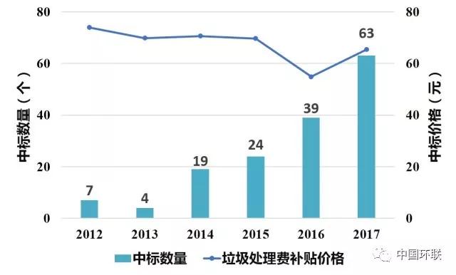 2012年-2017年全國(guó)生活垃圾焚燒廠中標(biāo)情況