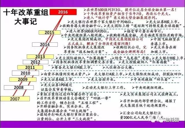 2007年6月唐雙寧從銀監(jiān)會副主席調(diào)任中國光大集團黨委書記、董事長,擔綱重組重任。7年完成這家“剪不斷理還亂”公司的天書式重組;8年進入世界500強,10年資產(chǎn)達4.5萬億,再造7個光大,每年為社會創(chuàng)造500多億利潤……