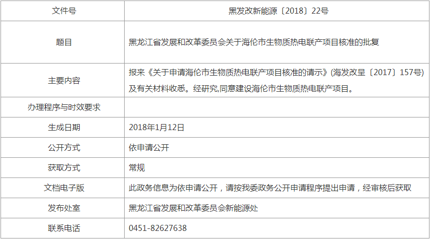 近日黑龍江省發(fā)改委核準批復了1個火電項目,即海倫市生物質(zhì)熱電聯(lián)產(chǎn)項目,詳情如下: