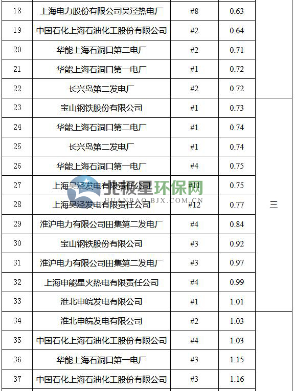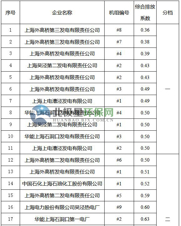 2017年度上海市燃煤發(fā)電機組環(huán)保排序已經(jīng)公布。