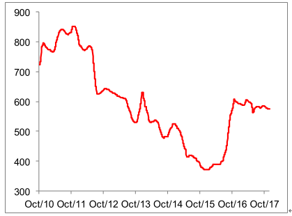 環(huán)渤海動(dòng)力煤價(jià)格指數(shù)走勢(單位:元/ 噸)