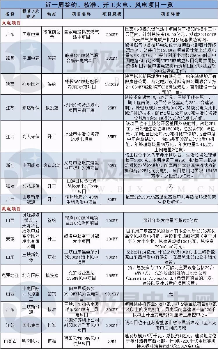 近一周簽約、核準(zhǔn)、開工的火電、風(fēng)電項(xiàng)目,這些項(xiàng)目建設(shè)規(guī)模有多大?電源結(jié)構(gòu)如何?投資或承建企業(yè)都是哪些?分布在哪些地區(qū)?電力君從以下幾個(gè)