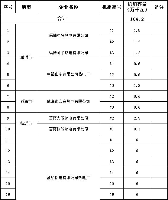 山東省2017年電力行業(yè)淘汰落后產(chǎn)能企業(yè)名單(第四批):淘汰164.2萬千瓦