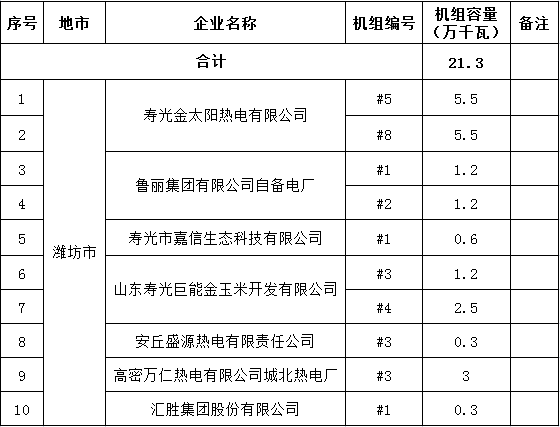 山東省2017年電力行業(yè)淘汰落后產(chǎn)能企業(yè)名單(第三批):淘汰21.3萬千瓦