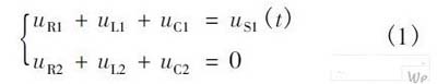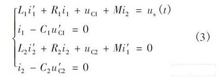 對于式(1),通過不同的處理將得到不同的數(shù)學(xué)模型。對圖1 所示的雙RLC 耦合回路進(jìn)行去耦處理,得到2 個獨(dú)立的RLC 串聯(lián)回路。對式(1)求導(dǎo),則可得到二元二階方程組: