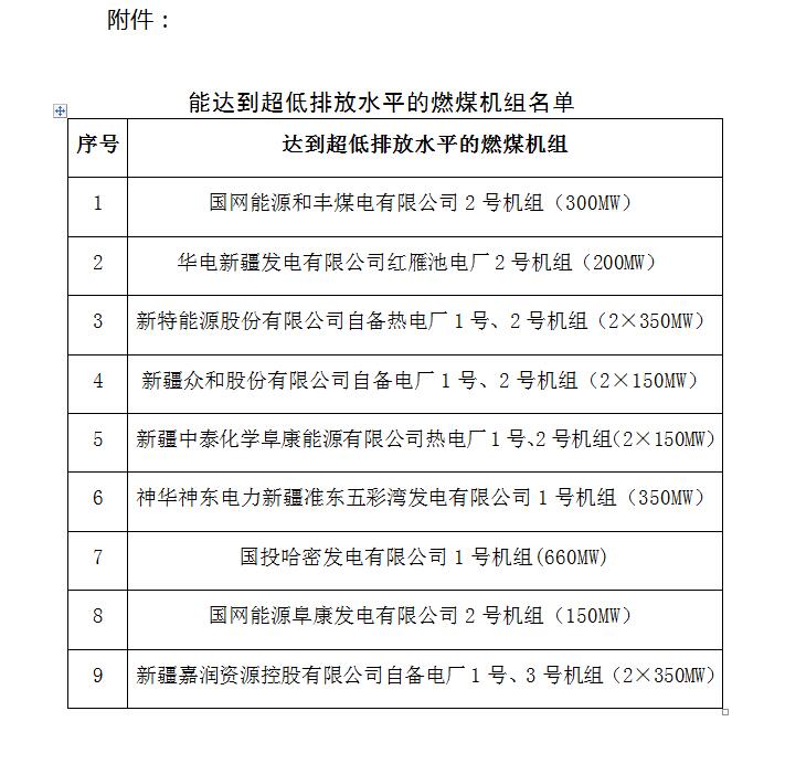 新疆:達(dá)到超低排放水平的燃煤機(jī)組名單公示(2018年第一批)