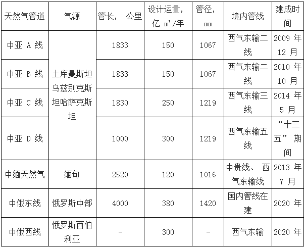 中國七大天然氣進口管道