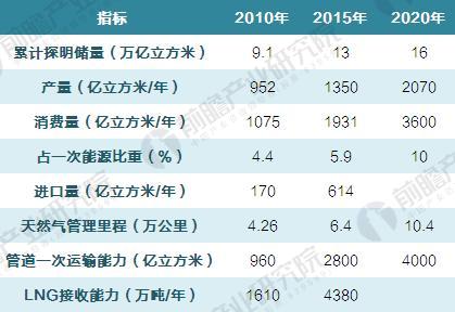 圖表1:天然氣行業(yè)十三五規(guī)劃目標