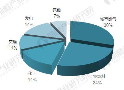 圖表3:2016年中國天然氣下游應(yīng)用結(jié)構(gòu)(單位:%)