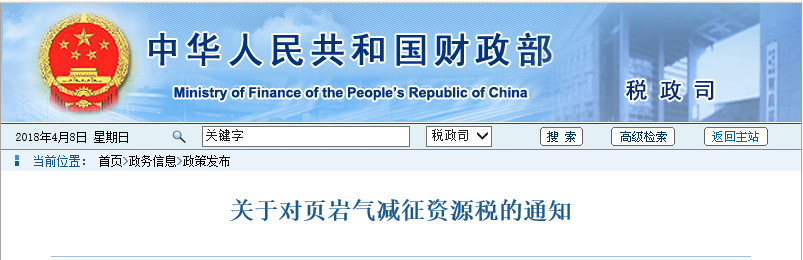 關(guān)注 | 財(cái)政部 稅務(wù)總局:頁(yè)巖氣資源稅減征30%