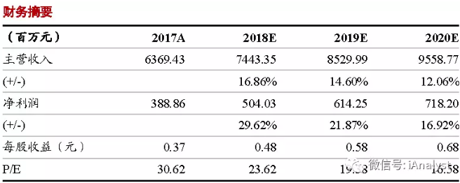 我們預(yù)計(jì),2018-2020年公司將實(shí)現(xiàn)凈利潤(rùn)5.04、6.14、7.18億元,分別同比增長(zhǎng)29.62%、21.87%、16.92%,2017-2019年EPS分別為0.48、0.58、0.68元,對(duì)應(yīng)23.6倍、19.4倍、16.6倍P/E。(按2018.4.9收盤價(jià)測(cè)算。)維持“增持”評(píng)級(jí)。