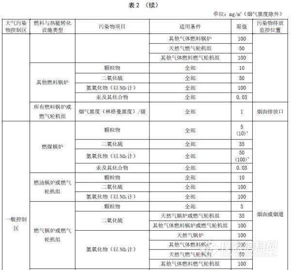 4.2.22016年9月20日起至本標準實施之日前環(huán)境影響評價文件通過審批的燃煤鍋爐建設項目,2017年1月1日起至本標準實施之日前環(huán)境影響評價文件通過審批的燃油、燃氣鍋爐或燃氣輪機組及其他燃料鍋爐建設項目,以及新建火力發(fā)電鍋爐或燃氣輪機組項目,自本標準實施之日起按所在控制區(qū)執(zhí)行表2中的排放濃度限值。