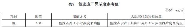 采用氨法脫硫或使用尿素、液氨或氨水作為還原劑脫硝的企業(yè),無組織排放監(jiān)控點濃度限值應符合表3規(guī)定。
