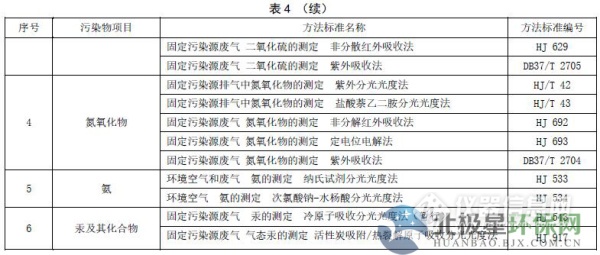 5.1.6對火電廠大氣污染物排放濃度的測定采用表4所列的方法標準。