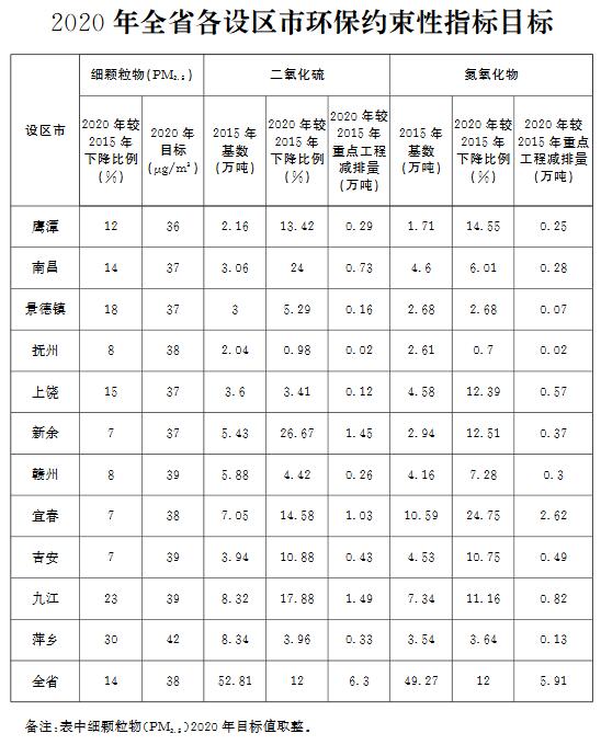 29.優(yōu)質區(qū)域率先達標。南昌市、鷹潭市、景德鎮(zhèn)市作為全省大氣環(huán)境質量較好的三個設區(qū)市,應進一步加大大氣污染防治力度,強化細化工作措施,力爭在2020年率先實現(xiàn)城市空氣質量達標。(責任部門:南昌市、鷹潭市、景德鎮(zhèn)市政府)