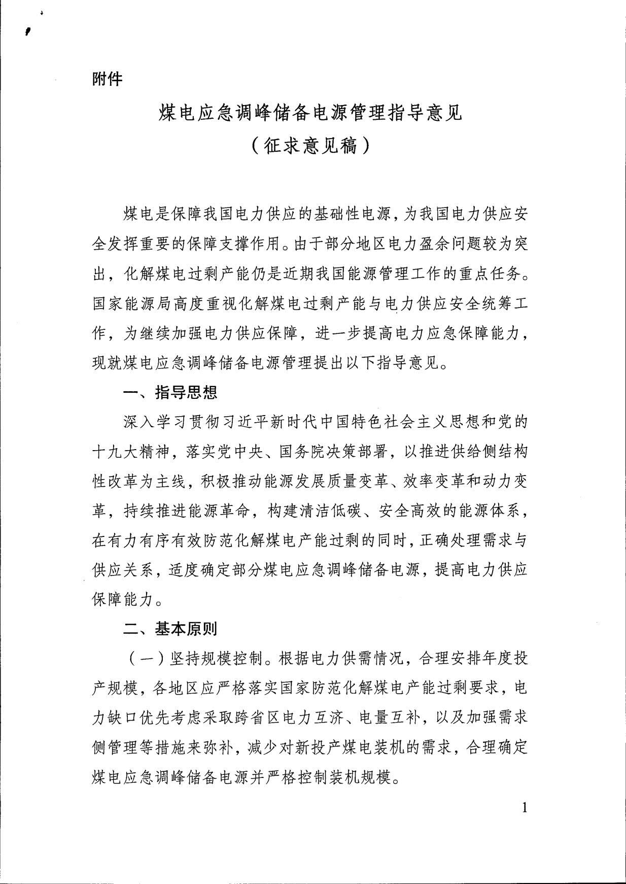 國家能源局發(fā)布《煤電應(yīng)急調(diào)峰儲(chǔ)備電源管理指導(dǎo)意見(征求意見稿)》
