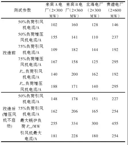 表1廣西4個(gè)電廠鍋爐引風(fēng)機(jī)、增壓風(fēng)機(jī)及系統(tǒng)阻力數(shù)據(jù)匯總表