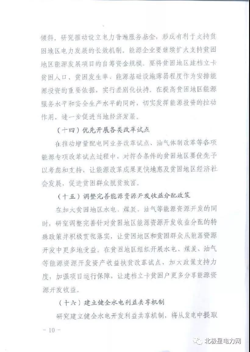方案提出,在各級各類能源“十三五”規(guī)劃的中期評估、調(diào)整以及相互銜接中,將貧困地區(qū)能源建設(shè)擺上更為重要的位置,在符合相關(guān)政策、條件允許、經(jīng)濟可行的情況的,煤炭、煤電、油氣、水電等資源開發(fā)利用類重大項目、跨區(qū)域重大能源輸送通道項目以及風(fēng)電、光伏等新能源項目,優(yōu)先在貧困地區(qū)布局建設(shè)。具體內(nèi)容見方案全文: