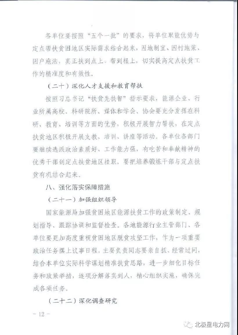 近日,能源局印發(fā)了進一步支持貧困地區(qū)能源發(fā)展助推脫貧攻堅行動方案(2018-2020年)。方案要求,到2020年,貧困地區(qū)能源資源開發(fā)有序有效推進;完成西藏等地區(qū)農(nóng)村通動力電,實現(xiàn)全國貧困地區(qū)農(nóng)村動力電全覆蓋。