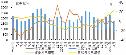 圖2 2017年以來(lái)美國(guó)煤炭與天然氣發(fā)電量及增速變化